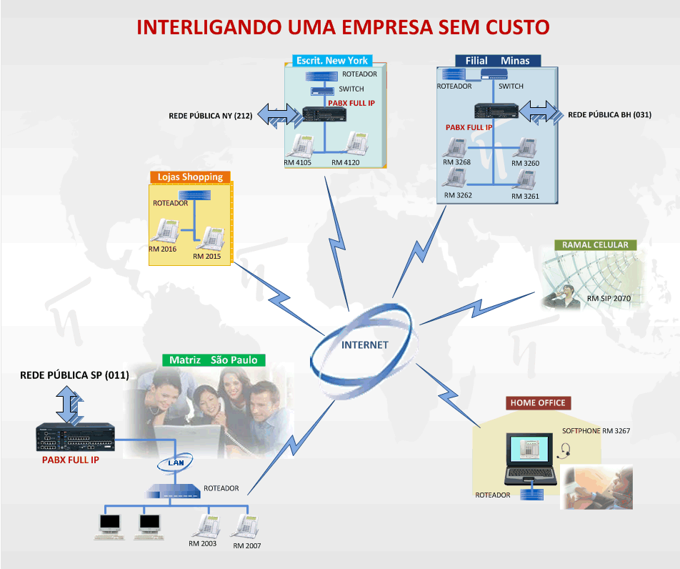 Custo das ligações entre matriz, filiais, escritórios, lojas e funcionários em trabalho externo = ZERO